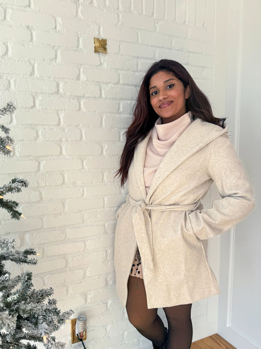 Ivory Hooded Lapel Coat