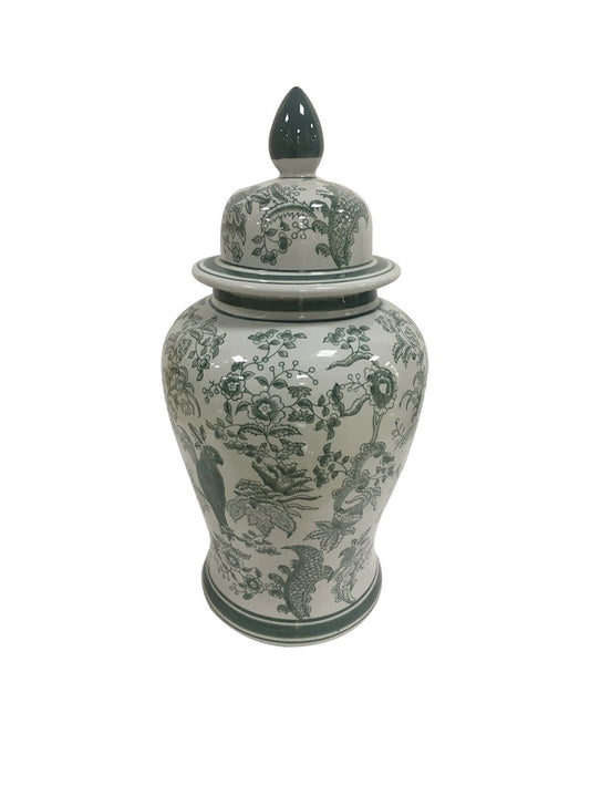 Jasper Green Parrot Chinoiserie Ceramic Jar 18"