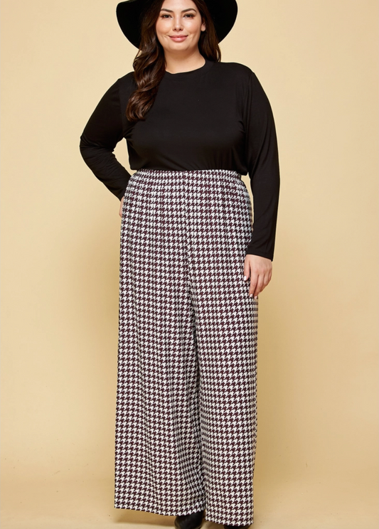 Houndstooth Curvy Fit Palazzo Pants