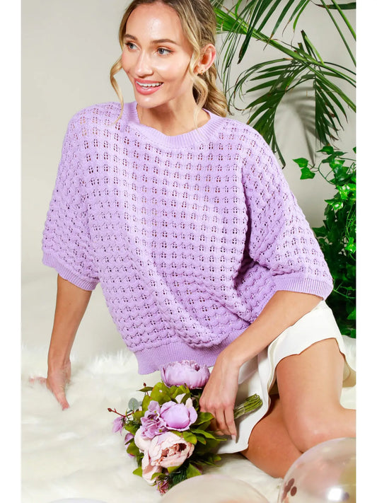 Lilac Crew Neck Crochet Sweater