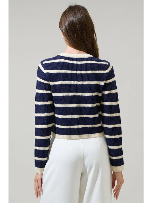 Navy And Ivory Kassidy Striped Cropped Cardigan