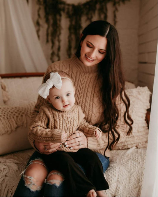 Mommy and Me Mapel Sugar Mockneck Cable Knit Sweater