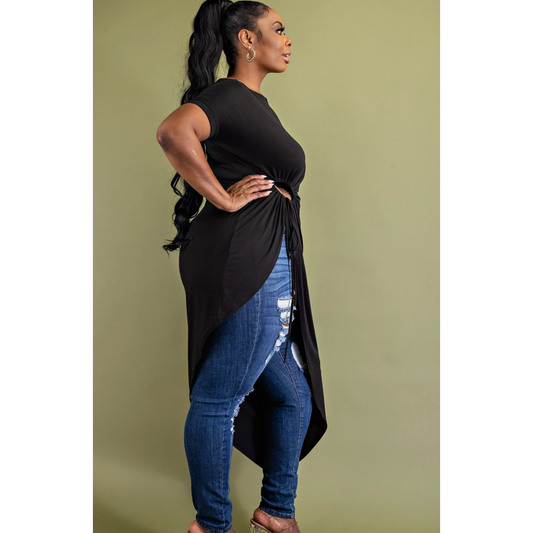 Navy Ruffle Sleeve Curvy Fit Blouse