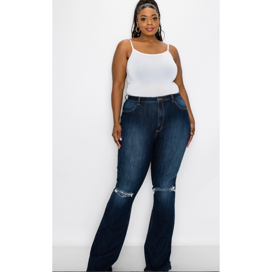 Lerah Distressed Stone Wash Flare Denim Jeans