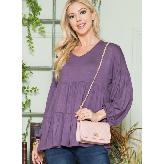 Purple Curvy Fit Long Sleeve Peplum Top