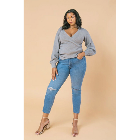 Heather Grey Curvy Fit Wrap Sweater