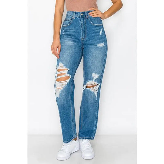 Lerah Distressed Stone Wash Flare Denim Jeans