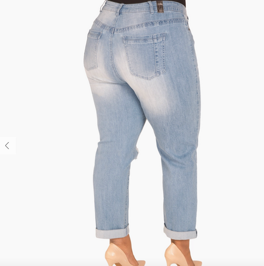 Poetic Justice Curvy Fit Light Wash Boyfriend Jeans