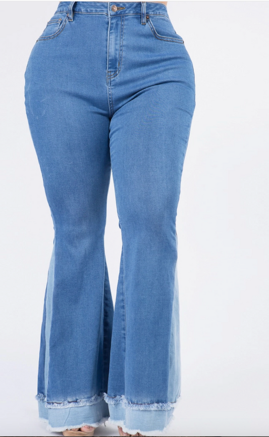 Two Tone Curvy Fit Bell Bottom Flare Jeans