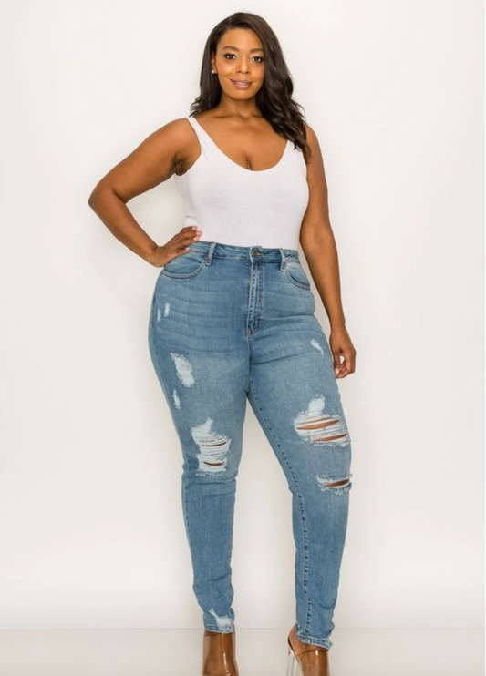 Sadie Curvy Fit Distressed High Rise Skinny Jeans