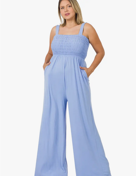 Smocked Blue Curvy Fit Jumpsuit