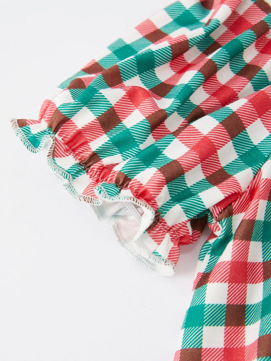 Christmas Plaid Smocking Embroidered Girls Outfit Set