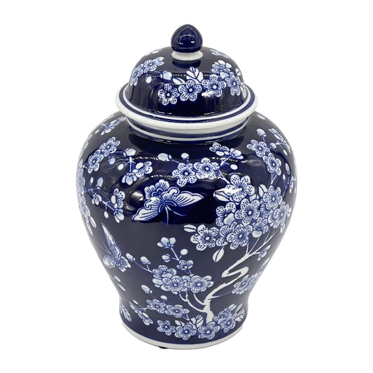 Dark Blue Ceramic Chinoiserie Ginger Jar 12"