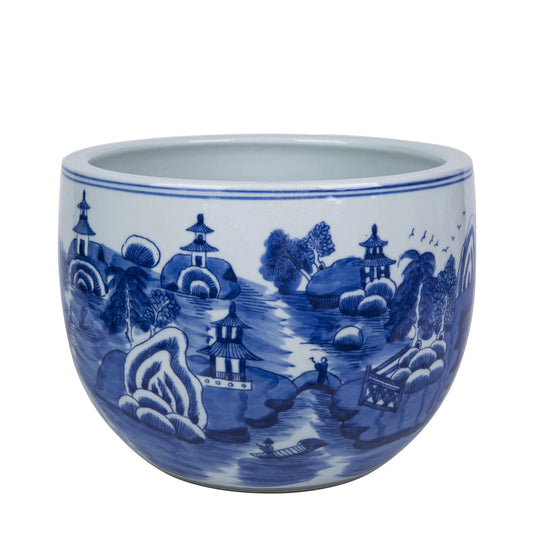 Blue and White Porcelain Mini Landscape Round Storage Jar