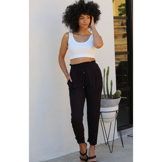 Black Paper Bag Tie Waist Joggers