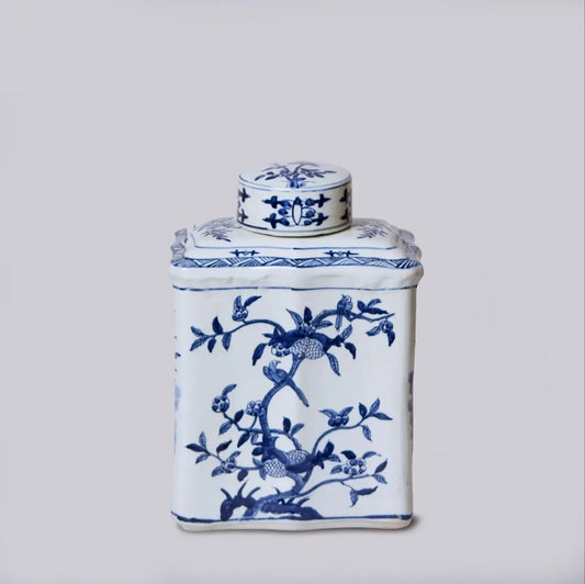 Bird and Flower Blue and White Porcelain Rectangular Caddy