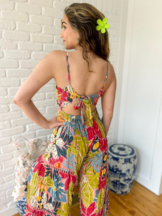 Colorful Tropical Strappy Wide Leg Jumpsuit