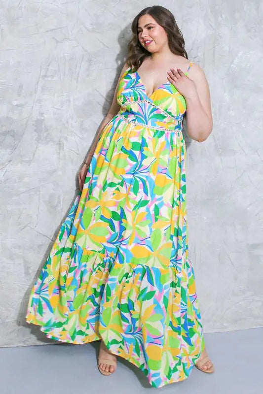 Yellow Green Tropics Curvy Fit Maxi Dress