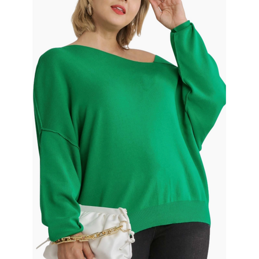 Green Slouchy Wide Sleeve Curvy Fit Sweater