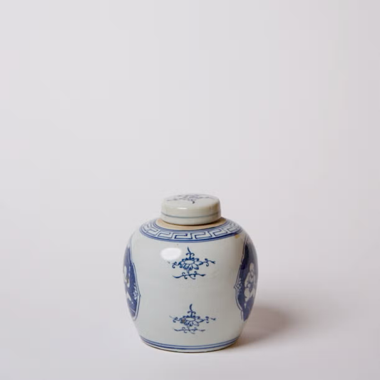 Cavorting Children Blue and White Lidded Round Storage Jar