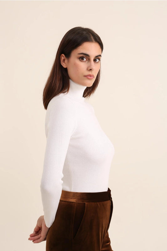 Wool Turtleneck Ribbed Sweater In Off White