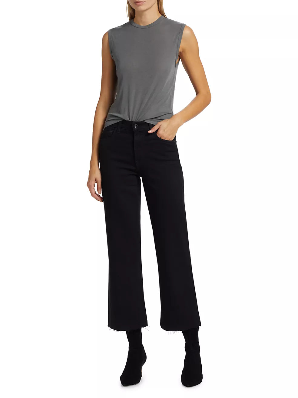 Fits like: A high-rise relaxed straight leg. Cropped at the ankles.