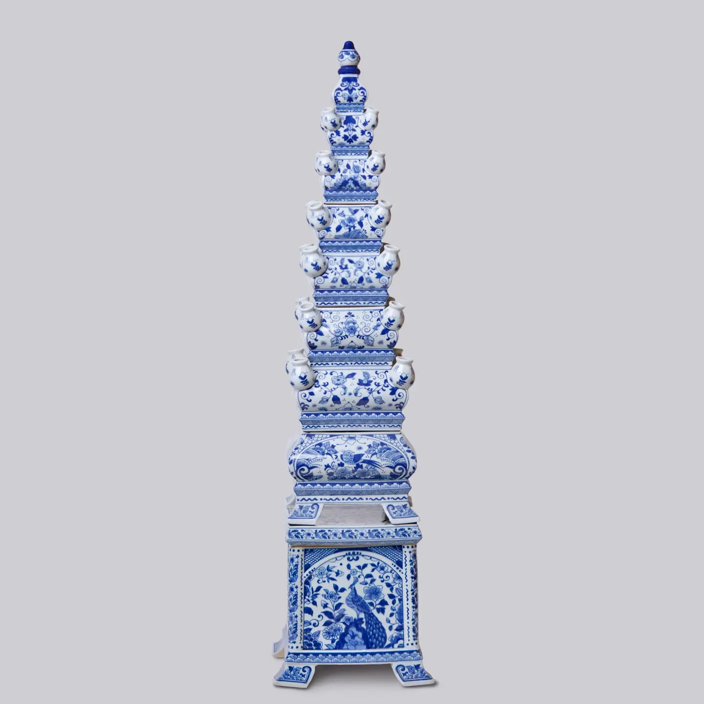 Cobalt Guild offers an assortment of blue and white porcelain vessels from the antiques markets of Jingdezhen, a town long distinguished by imperial patronage. This piece is a multi-part tulipiere vase, 42 1/2" x 11"