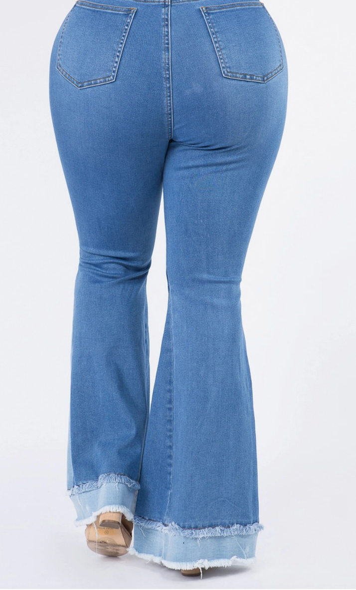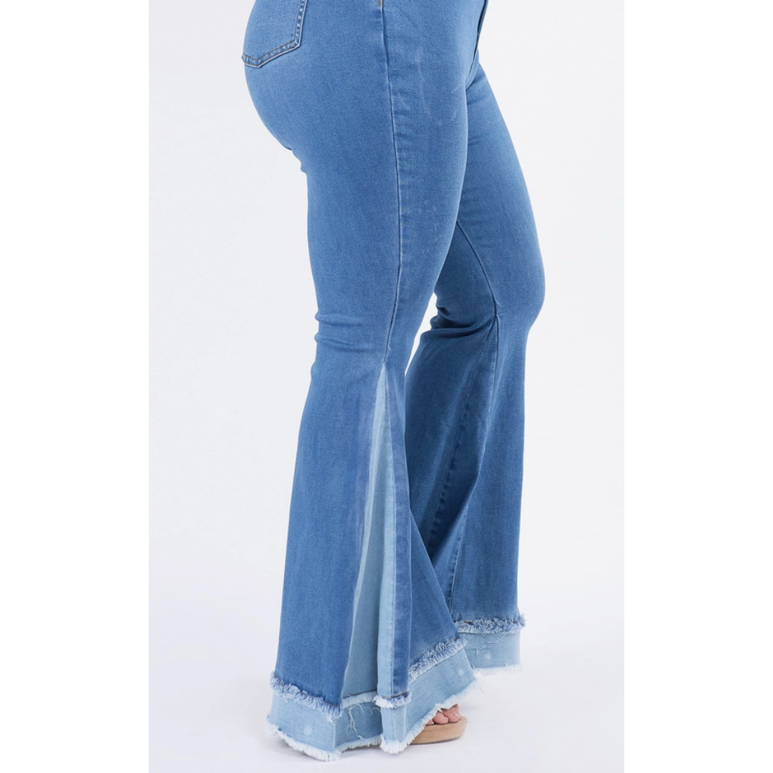Two Tone Curvy Fit Bell Bottom Flare Jeans