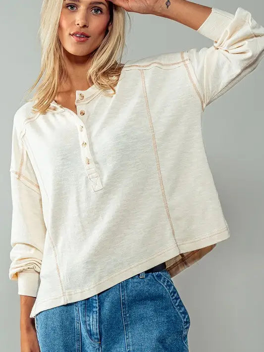 Long Sleeve Henley with Contrast Stitching Detail