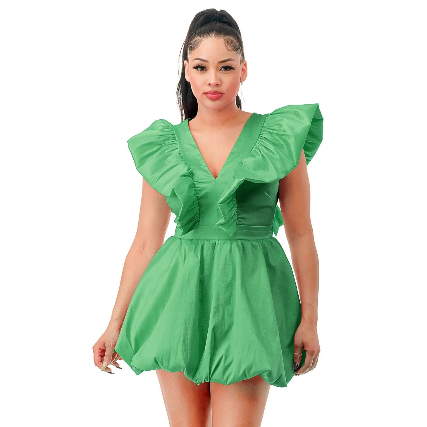 Green Deep V Sleeveless Curvy Fit Mini Dress