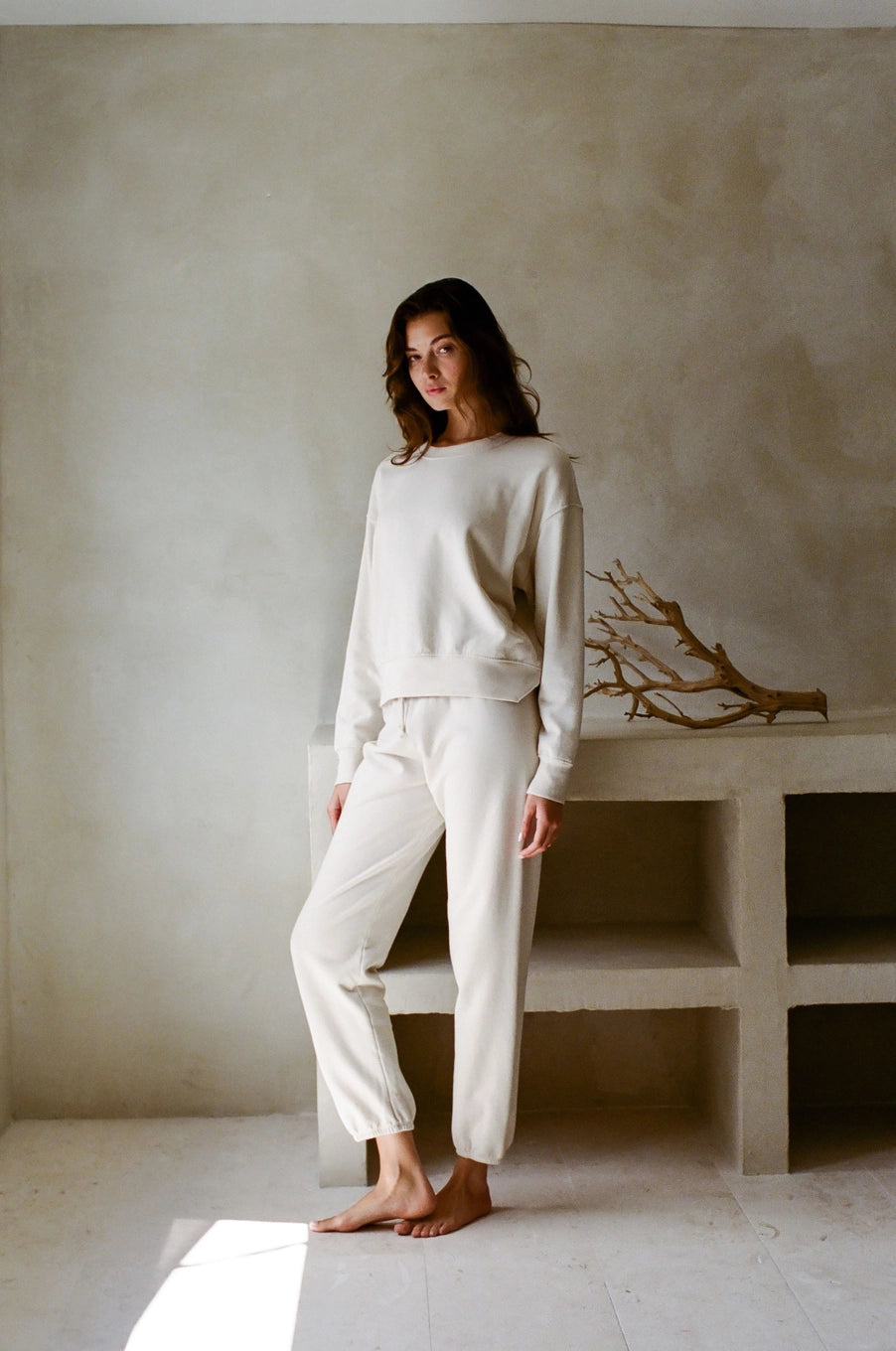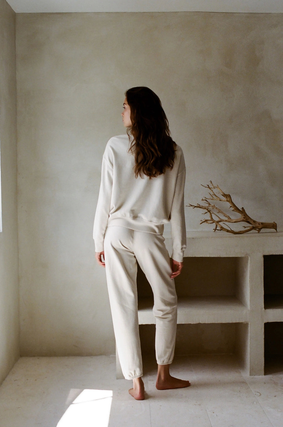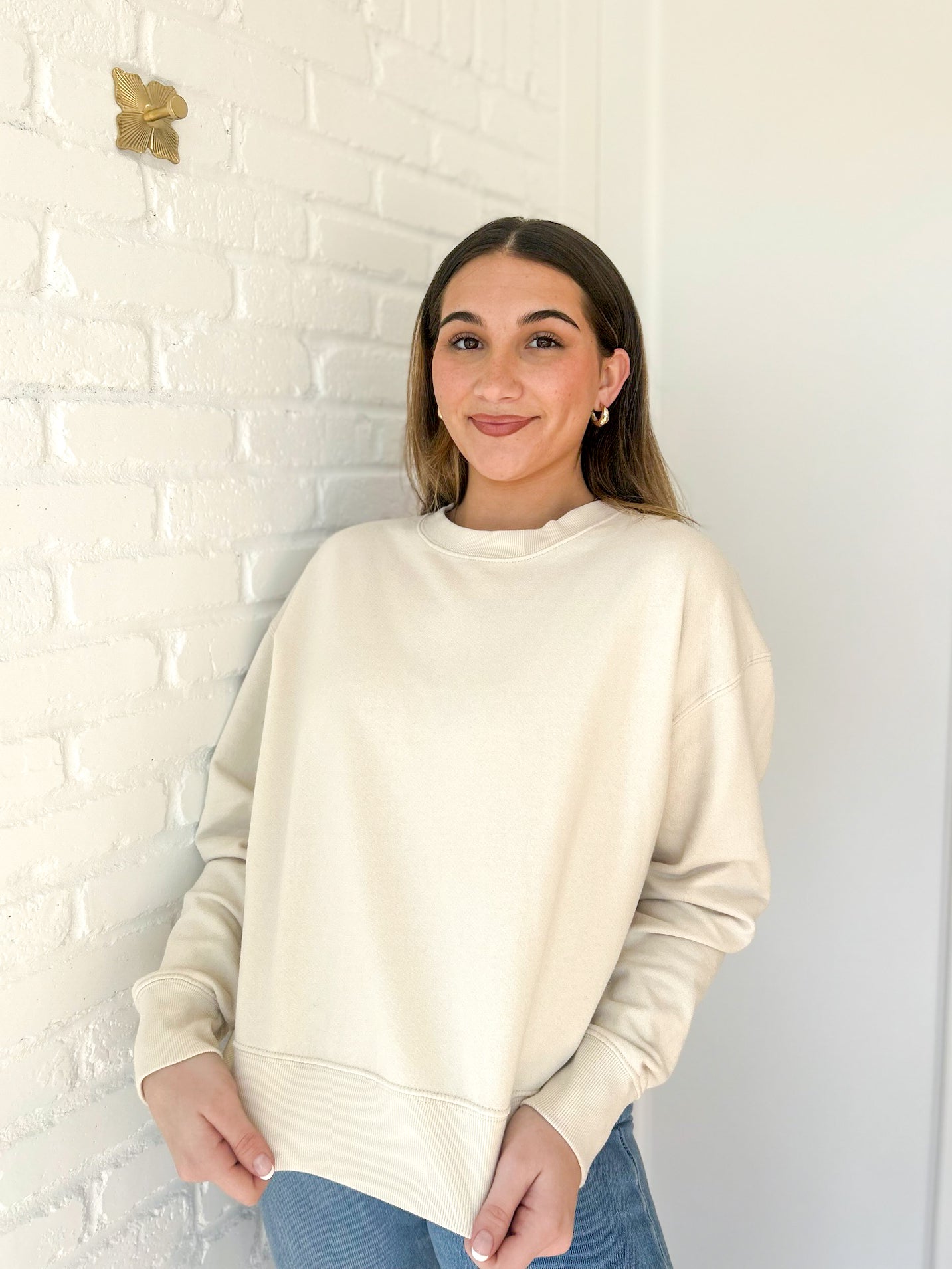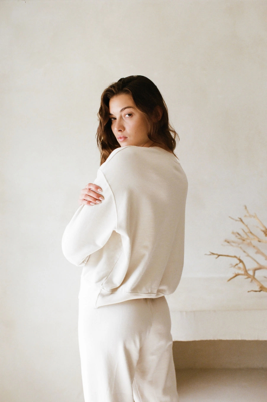 Knit 100% Organic Cotton Garment Washed Crew Neck Long Sleeve Pullover Top