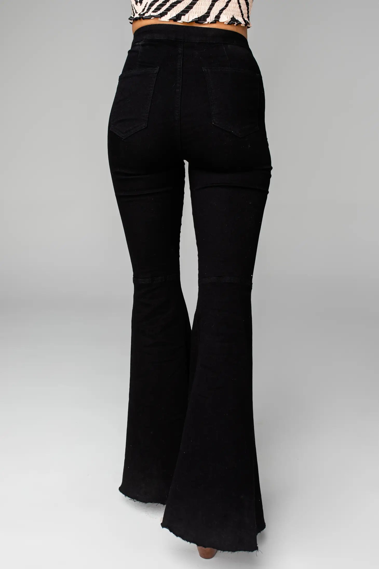 Flare black denim jeans that go with everything! Style these black jeans endlessly. We love the flare bootcut style.