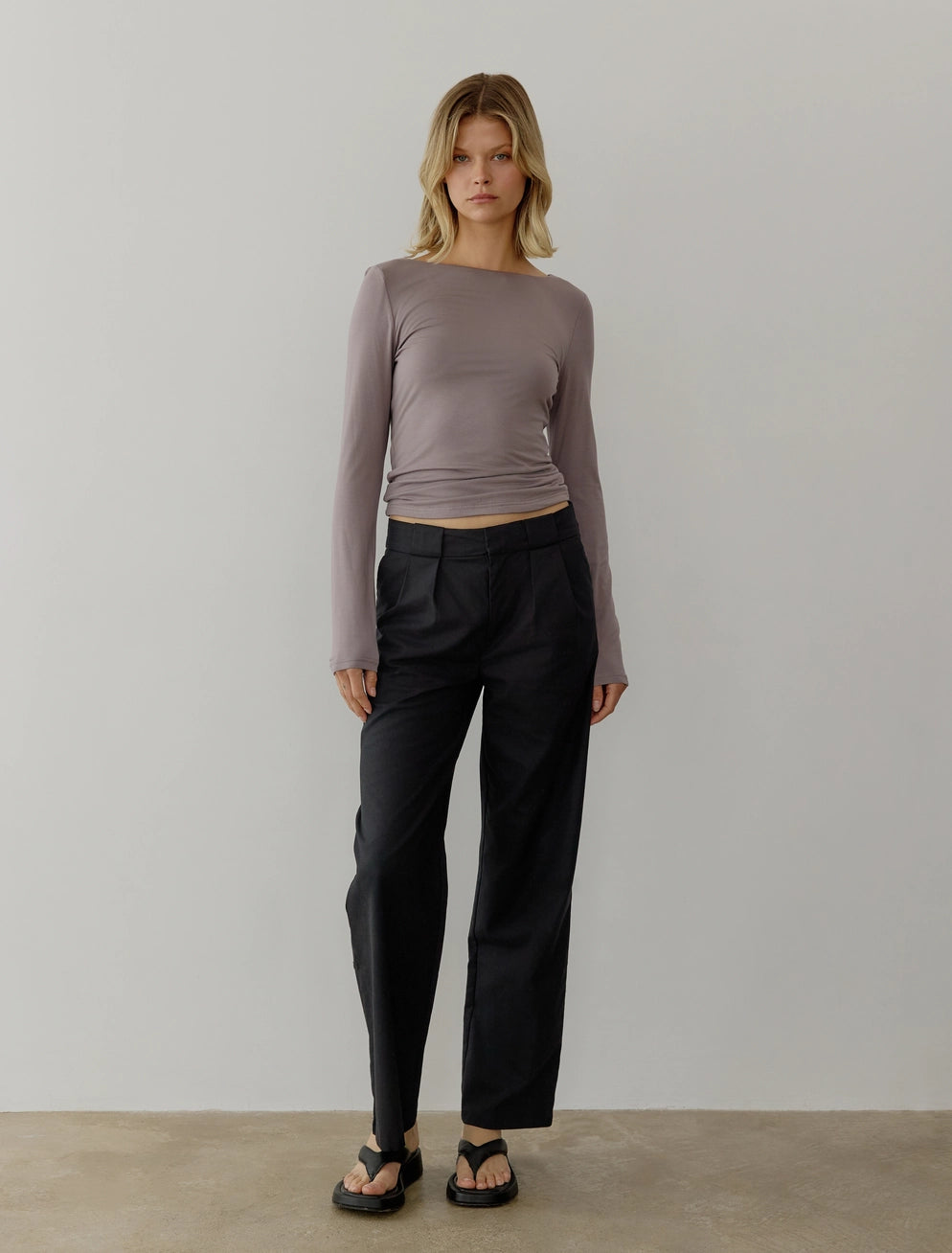 Seamless Boat Neck Long Sleeve Top In Dusty Purple