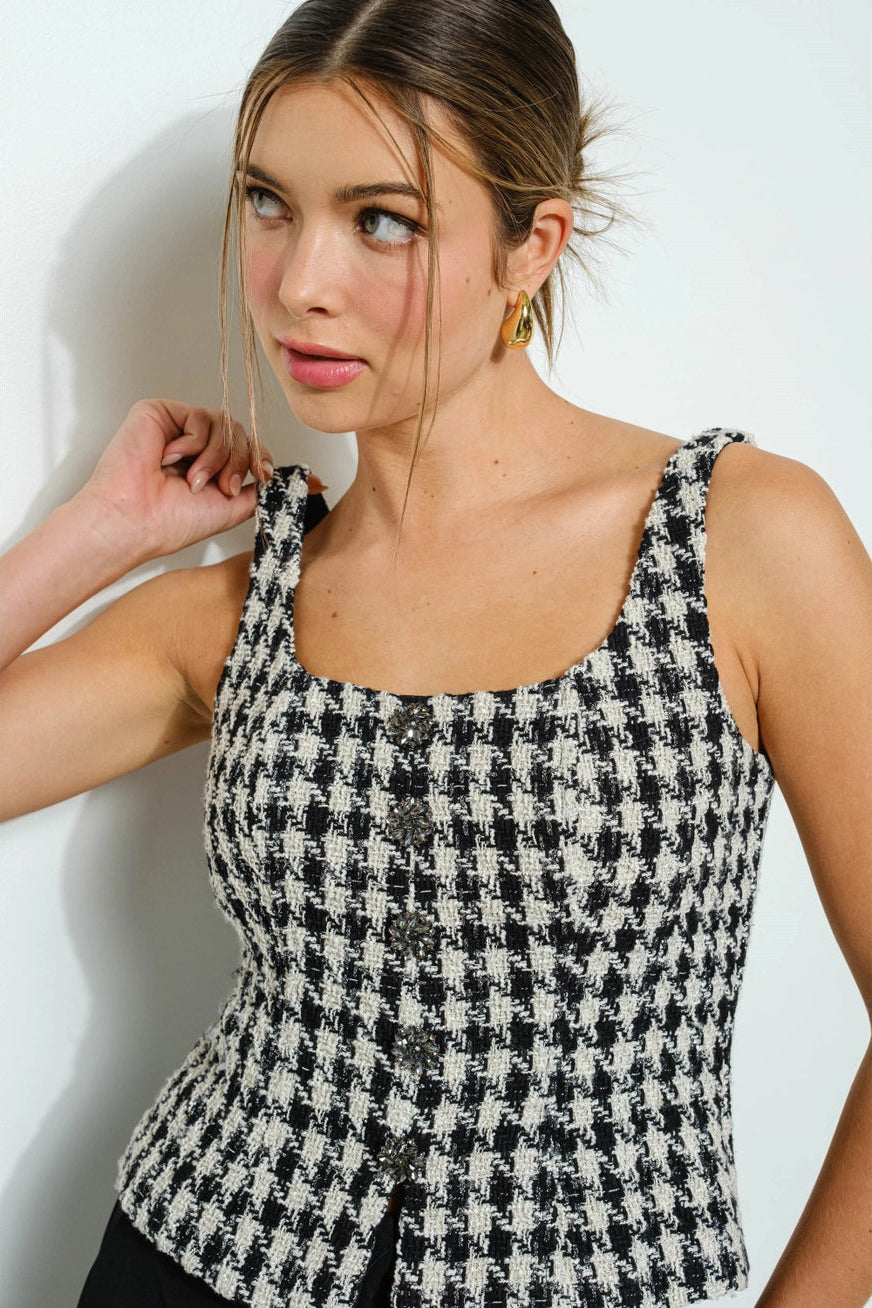 Tweed Square Neck Tank Top