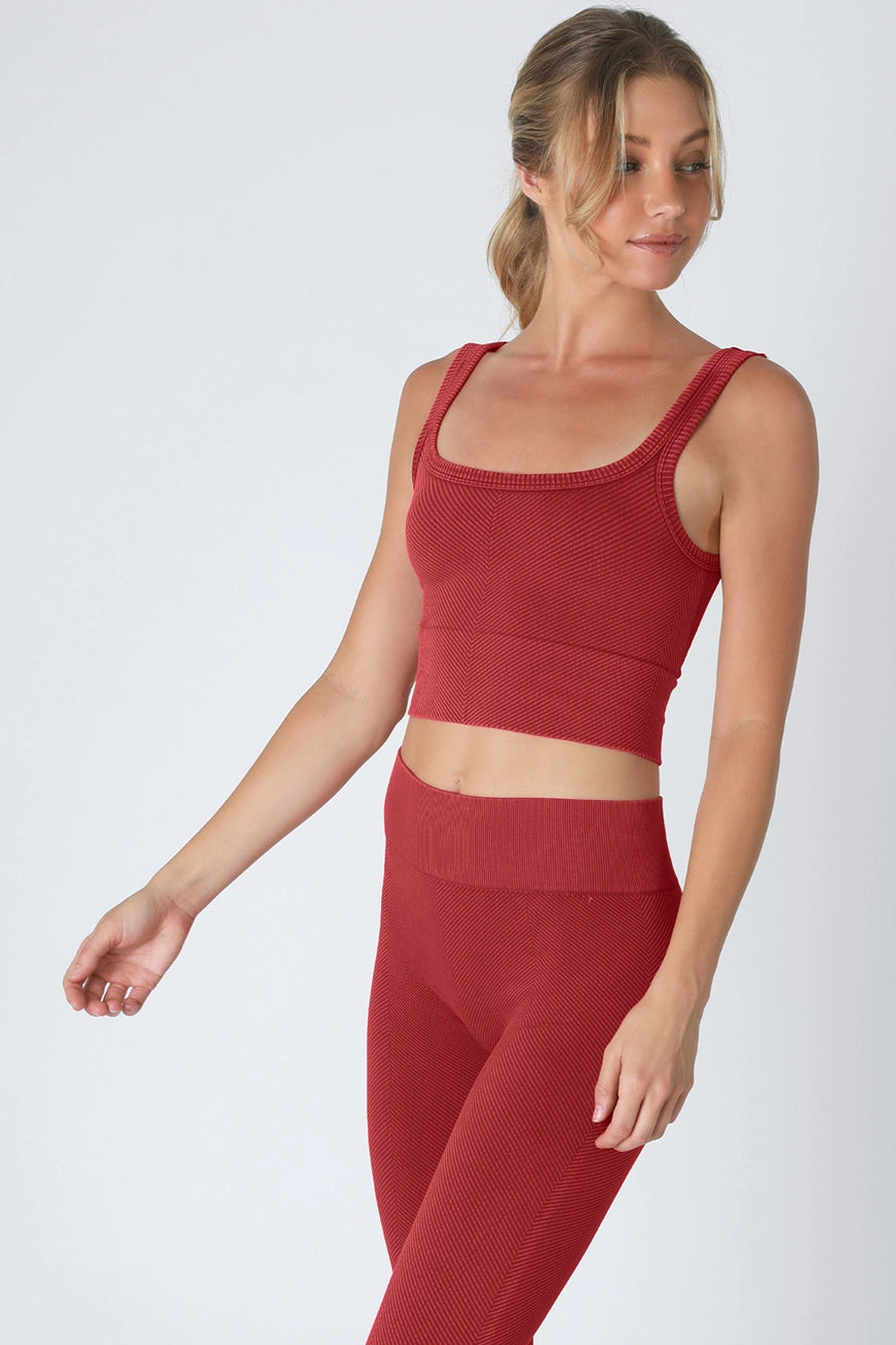 This tank is One Size. A ribbed NikiBiki knit crop top featuring a scoop neckline and back and vintage wash. Fabric: 92% Nylon / 8% Spandex. Made in the USA NO 2. Popular Style Chic and timeless garment featuring a seamless construction and a classic chevron pattern with a vintage flair. This crop top offers a blend of style and comfort, making it suitable for everyday wear or special occasions